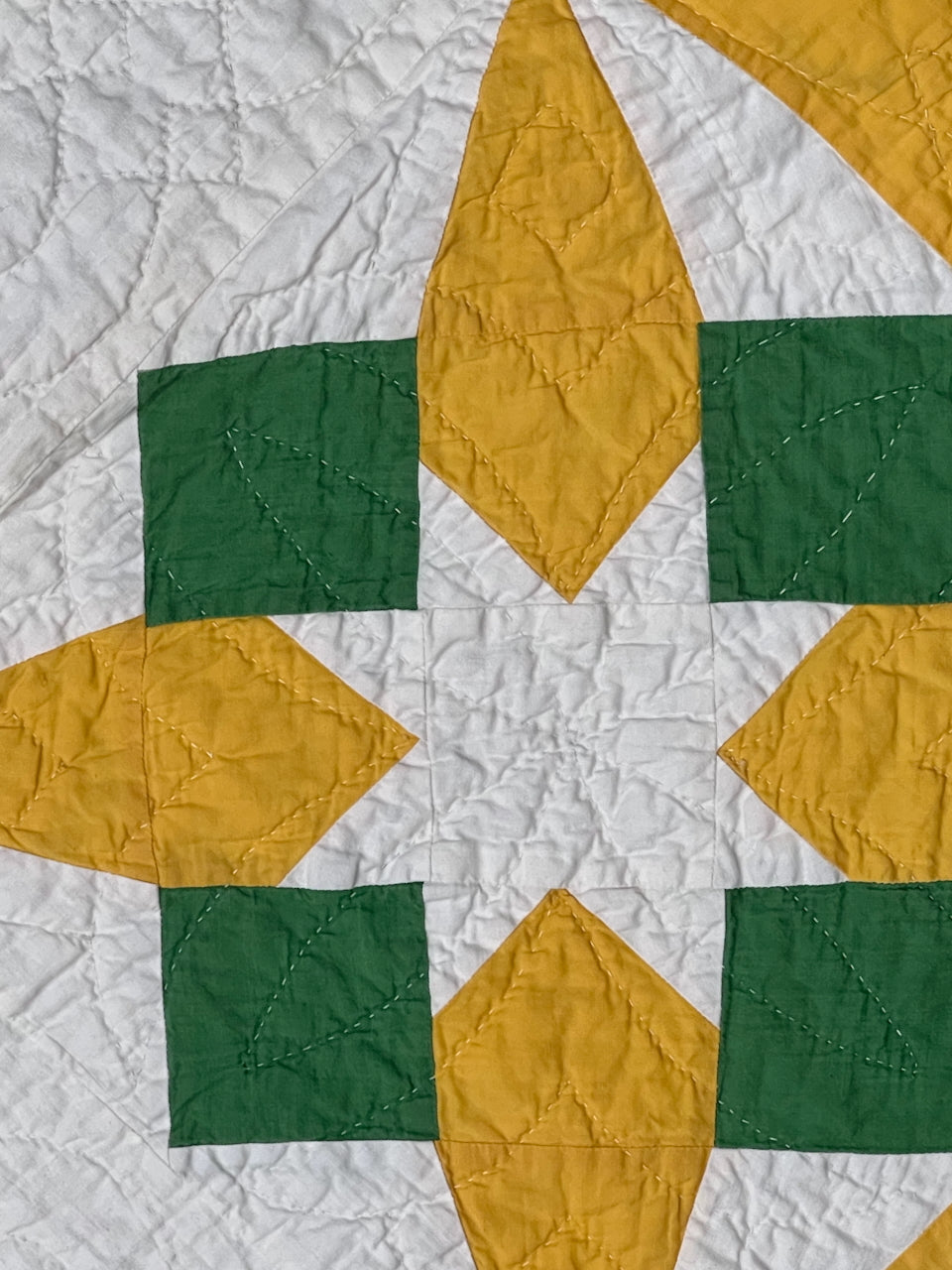Quilts have always reflected popular culture (along with so much else), and here we see a space-related pieced design called "Sky Rocket."