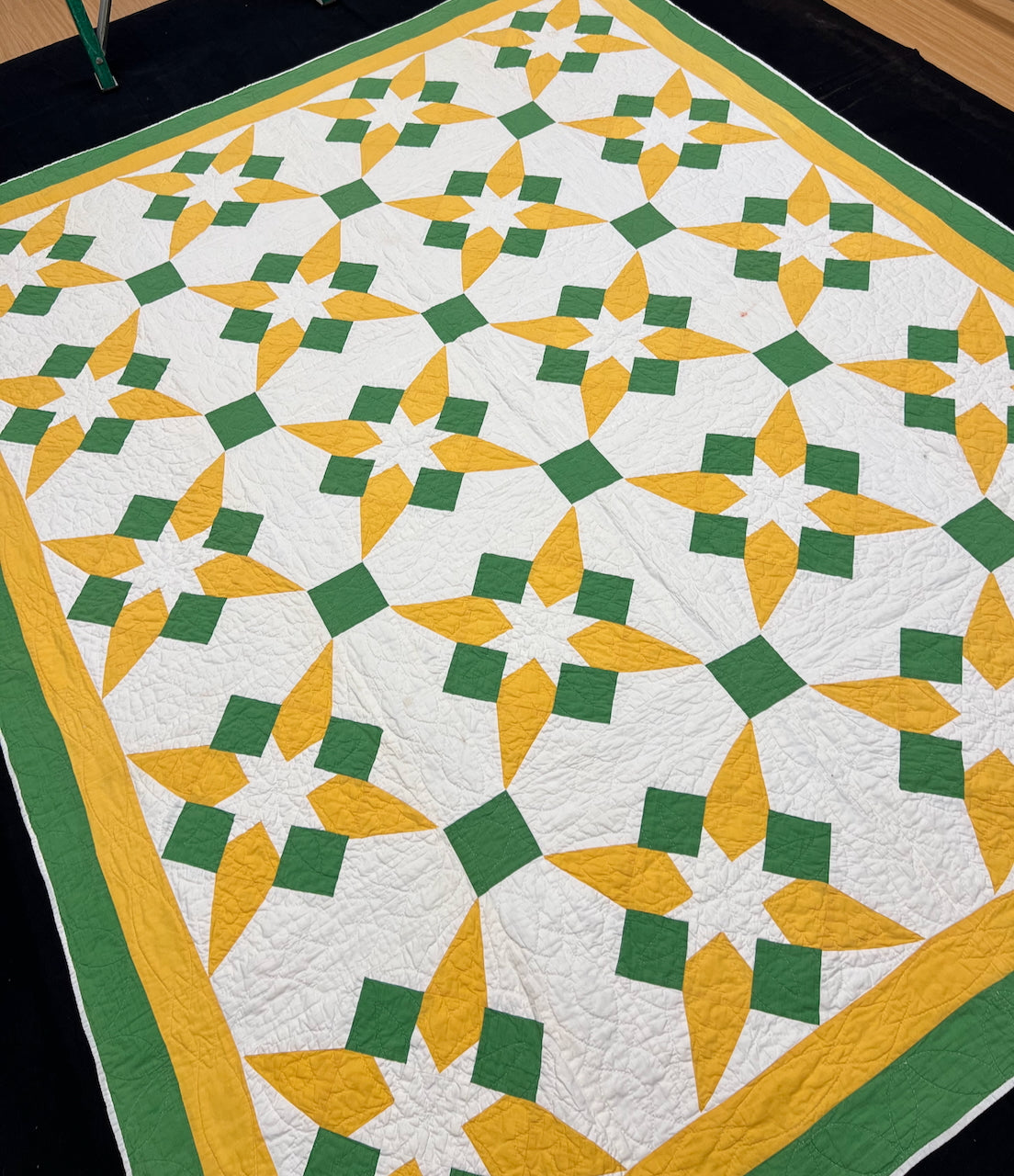 In Excellent Condition: strong and sturdy, thin and lightweight with elaborate, and very fine hand quilting. Ready for your collection -- or perhaps for your favorite kid's bedroom!