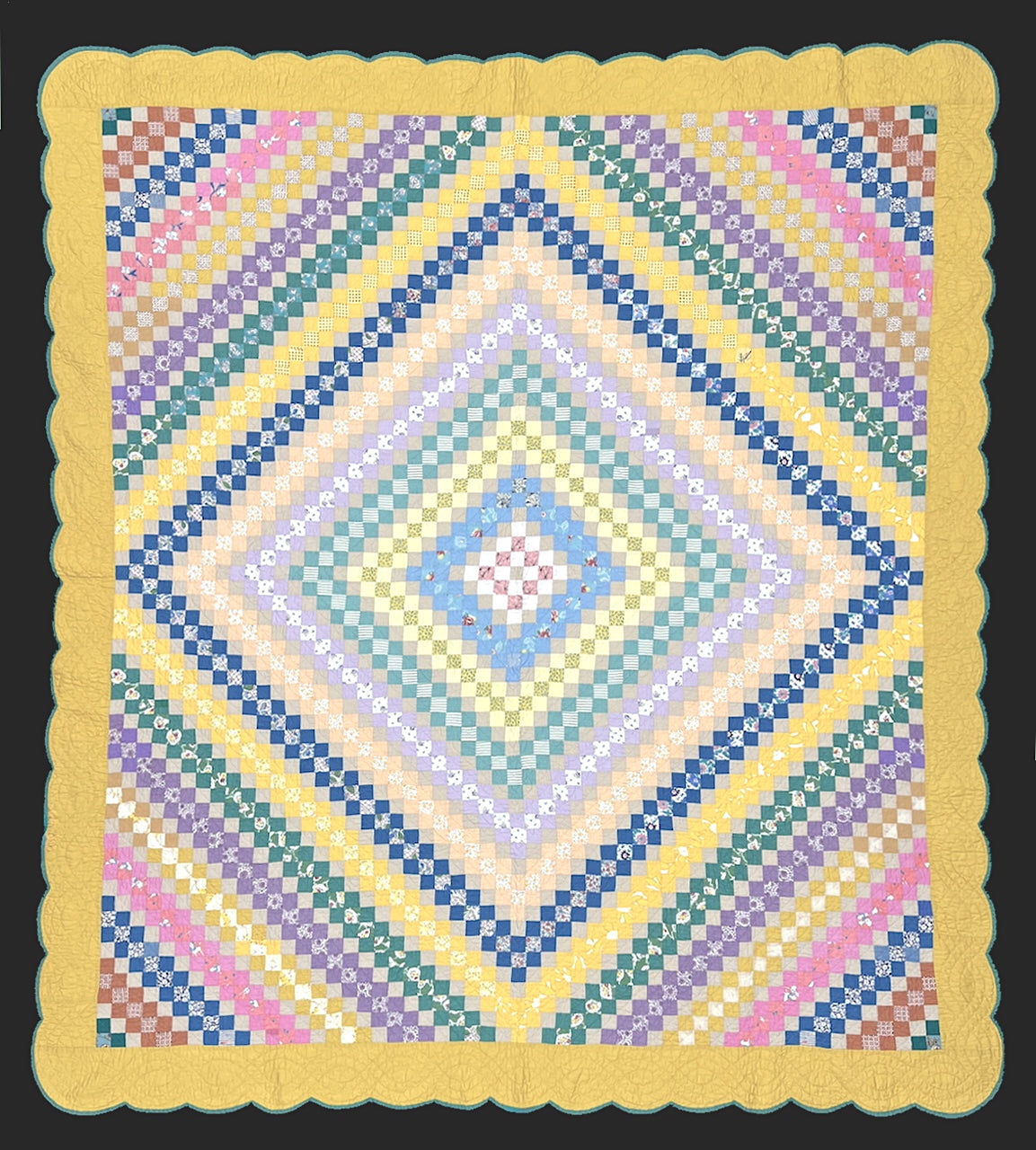 Check out the hand quilting on this Trip Around the World quilt, made circa 1940. This one has a lot going for it -- in addition to the extraordinary stitching.