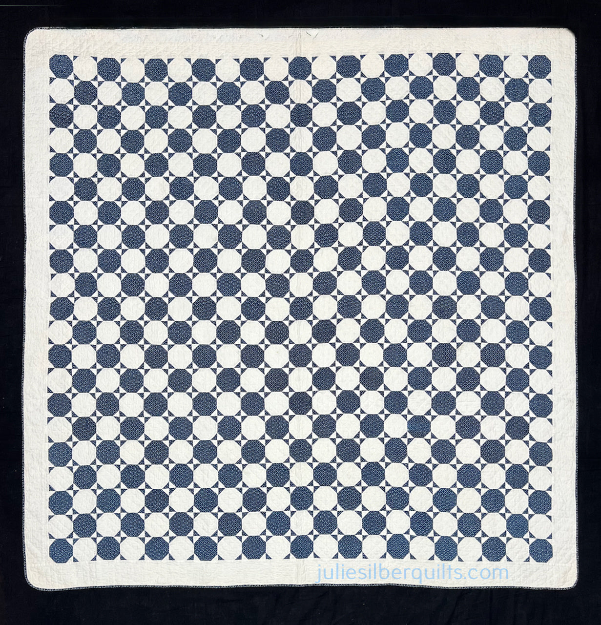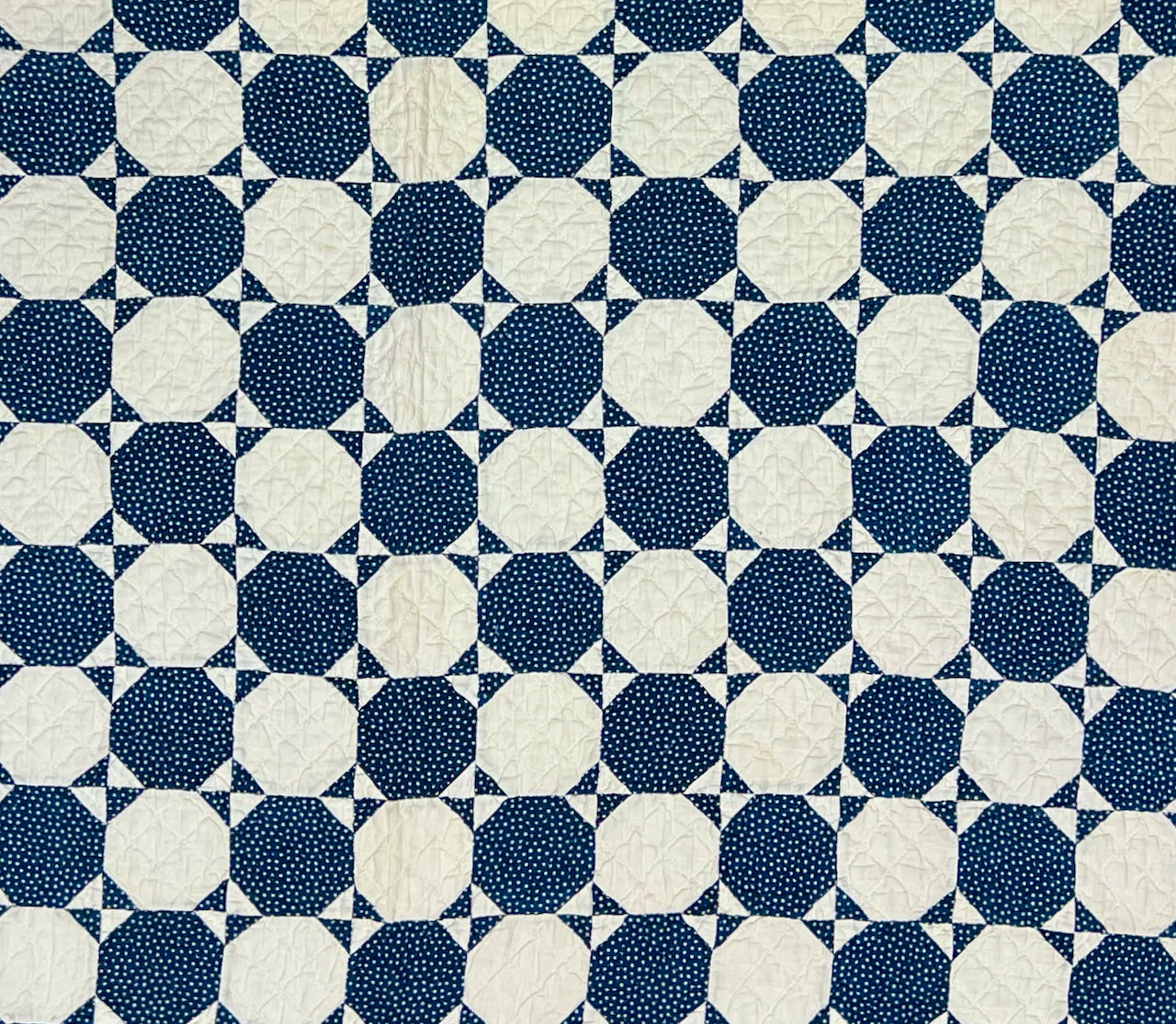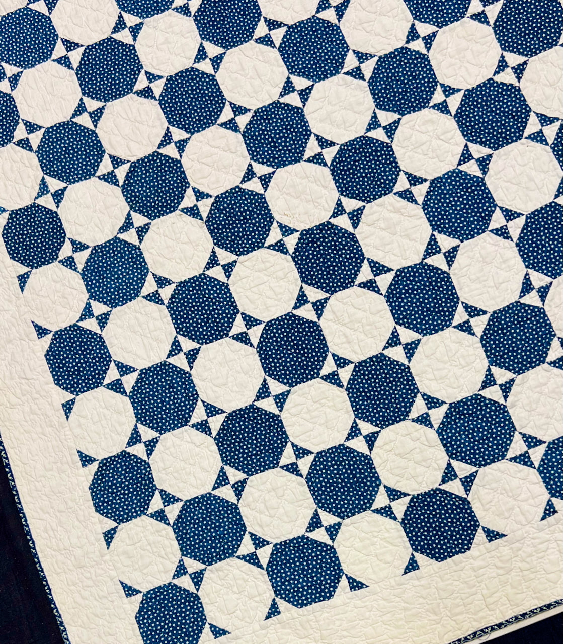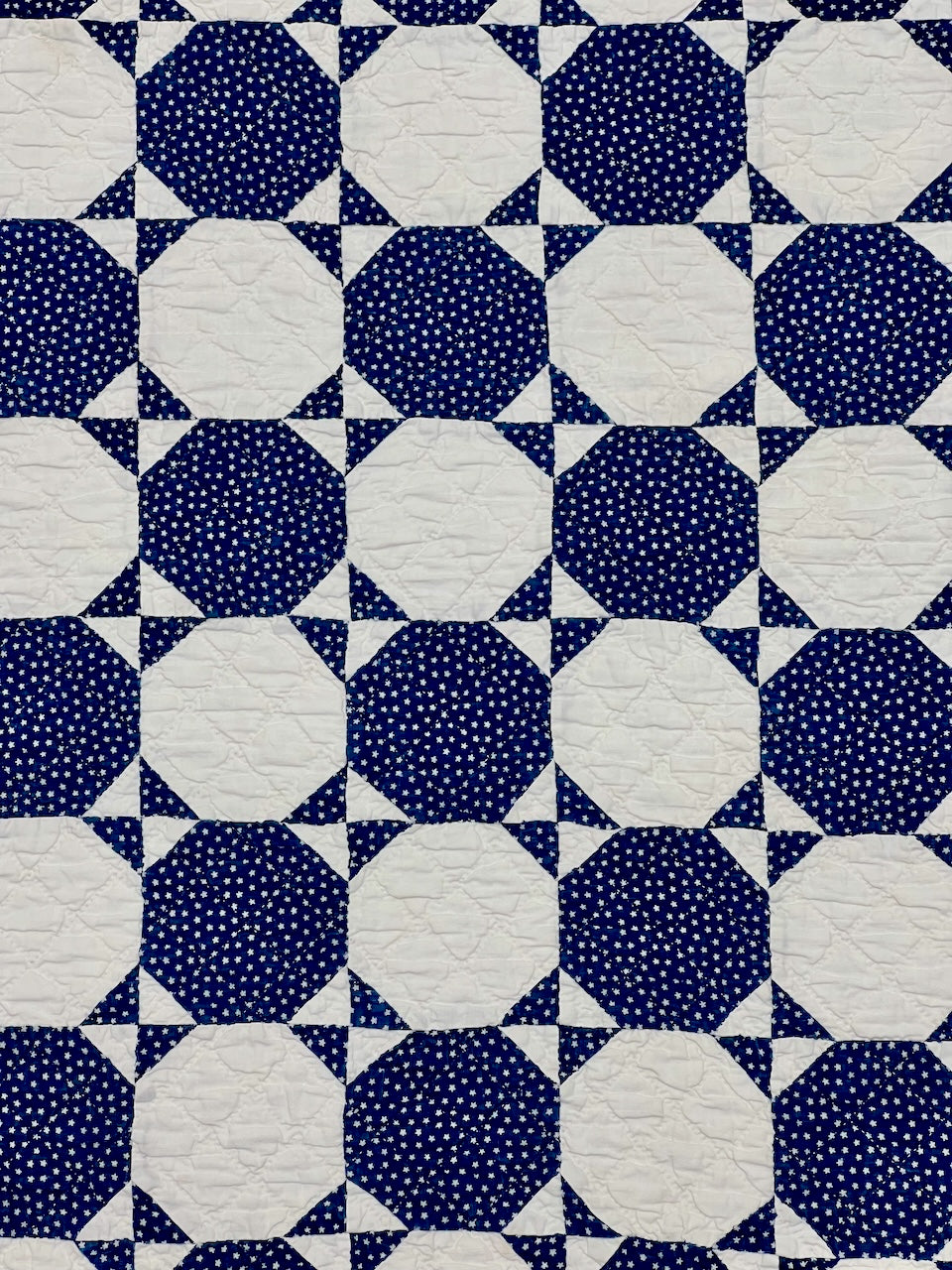 My Mom loved 19th century indigo & white quilts, and had a significant collection of wonderful examples. Here, the small scale of the many pieces, and the relatively small size of this one, overall, meant that Mom put it up on her wall pretty often.