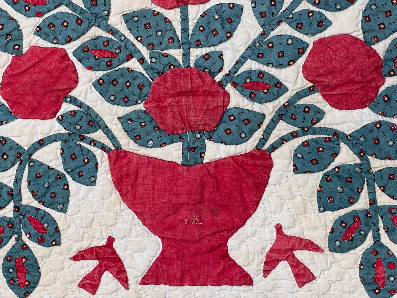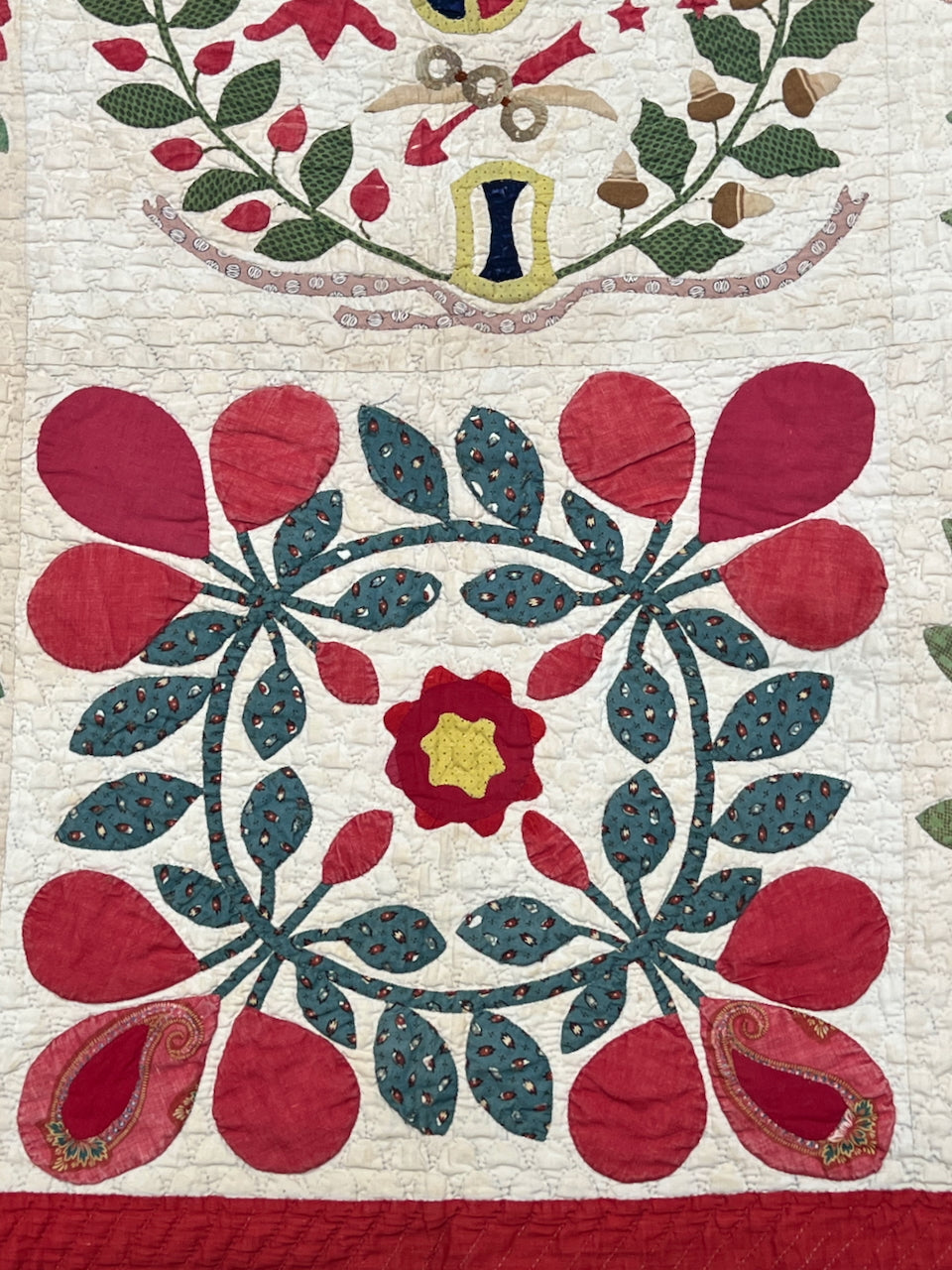 It's very rare that a true, authentic Baltimore Album Quilt comes onto the market. We're very pleased that we can offer this beautiful example, dated by experts as having been made between 1846 and 1849.
