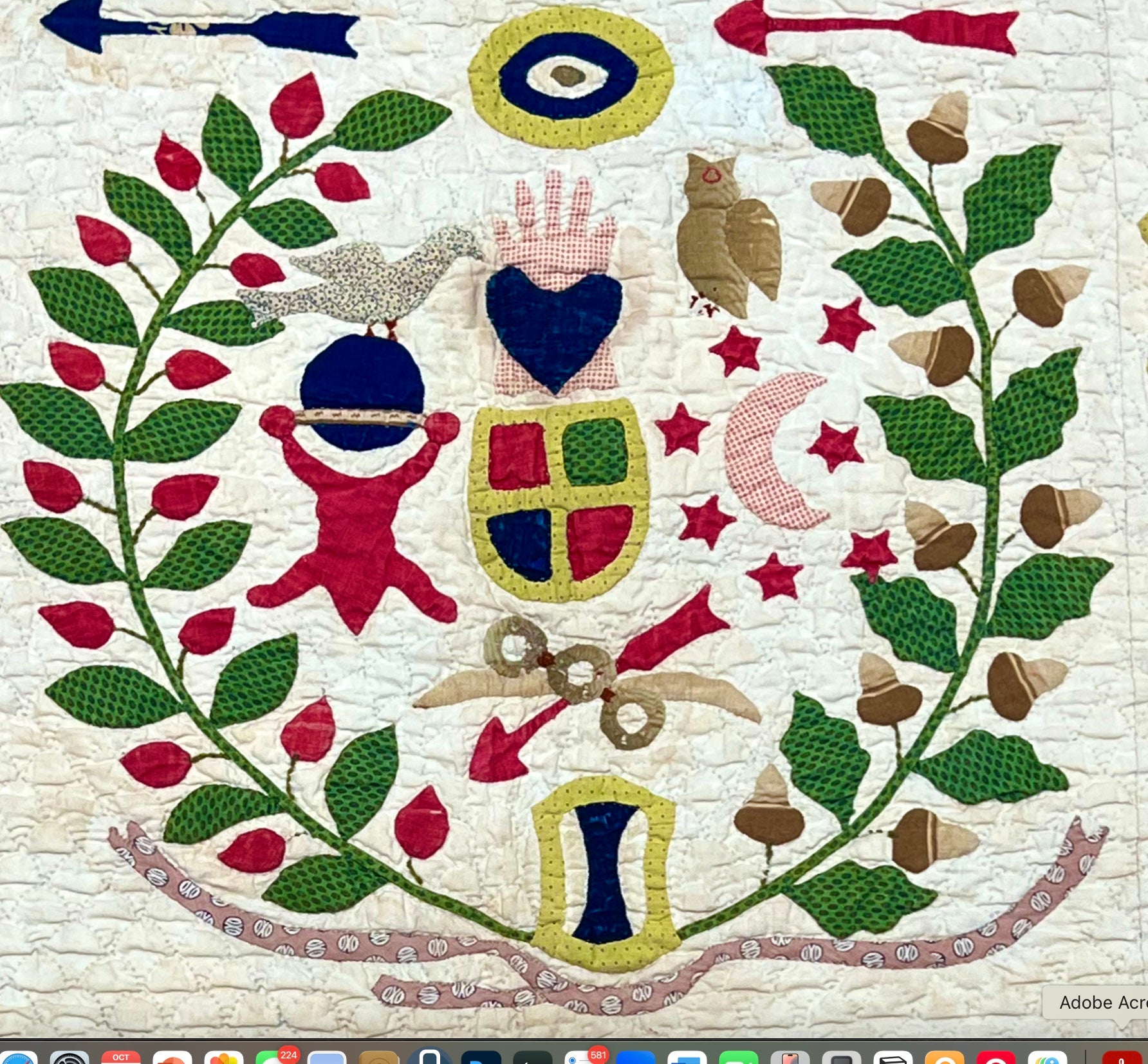 The history of "BAQ's" is fascinating. Here is how the International Quilt Museum summarized them " A distinctive style of album quilt featuring elaborate appliqué designs flourished in Baltimore, Maryland between 1845 and 1854. A group of women linked by church membership sold designs and patterns as pre-cut and basted blocks for buyers to complete at home as quilt tops and completed quilts. Dates, places, inscriptions, and signatures could be added to each block in ink. Baltimore Album quilts were often created as gifts, and presented on momentous occasions..."